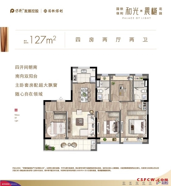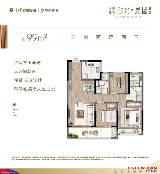 3.户型: 99㎡(三房二厅二卫);117㎡(三房二厅二卫);127㎡(四房二厅二卫);147㎡(四房二厅二卫);高装标精装交付